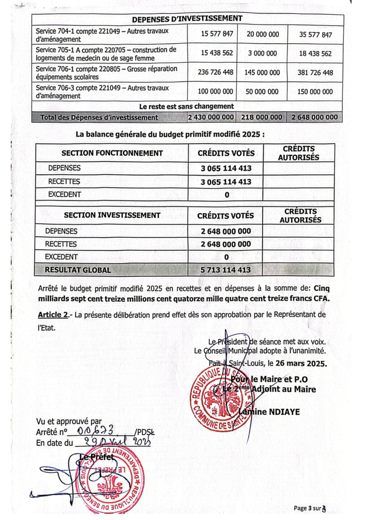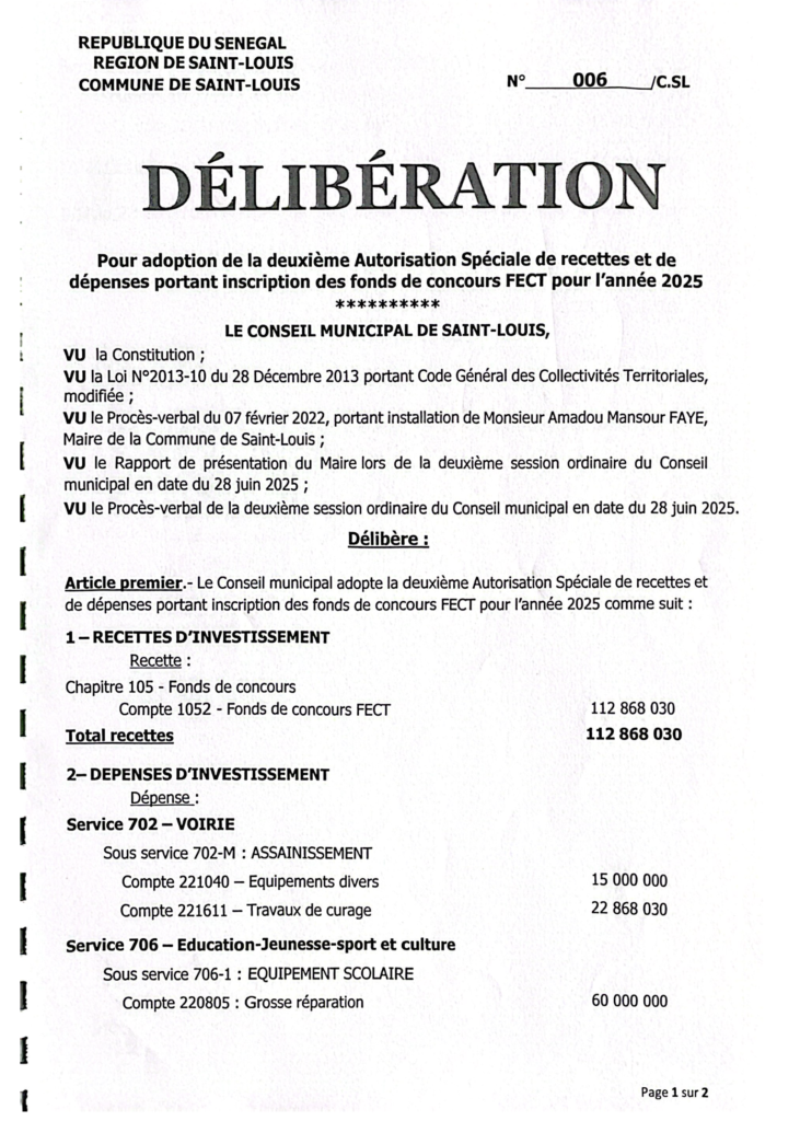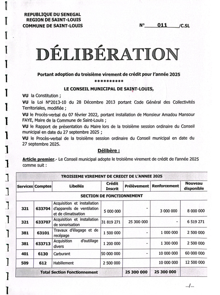 Délibérations de la Commune de Saint-Louis – Exercice 2025 - lavilledesaintlouis.sn